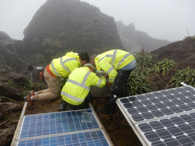 vue de la zone technique avec le wifi à gauche et les éoliennes HS en haut à droite